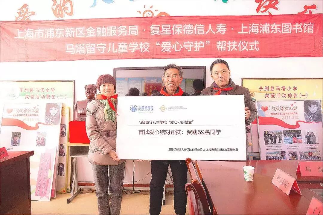 复星保德信自2018年6月把子洲县马塔留守儿童学校设为“爱心守护学校”后,已先后为学校师生提供健康体检、捐赠学习、生活、体育用品,并在公司内部号召员工自愿进行一对一爱心帮扶,形成长期资助的帮扶体系。该公司自成立以来,以守护为己任,始终重视并勇于承担社会责任,目前已拥有复星保德信青少年社区志愿奖、“守护快乐成长”足球公益项目、乡村医生健康扶贫项目、马塔留守儿童学校“爱心守护计划”等持续性公益活动。