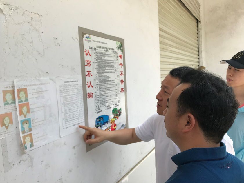 杨伟强在看贫困户门口的信息,“认穷不认输,苦干不苦熬”10字口号很醒目