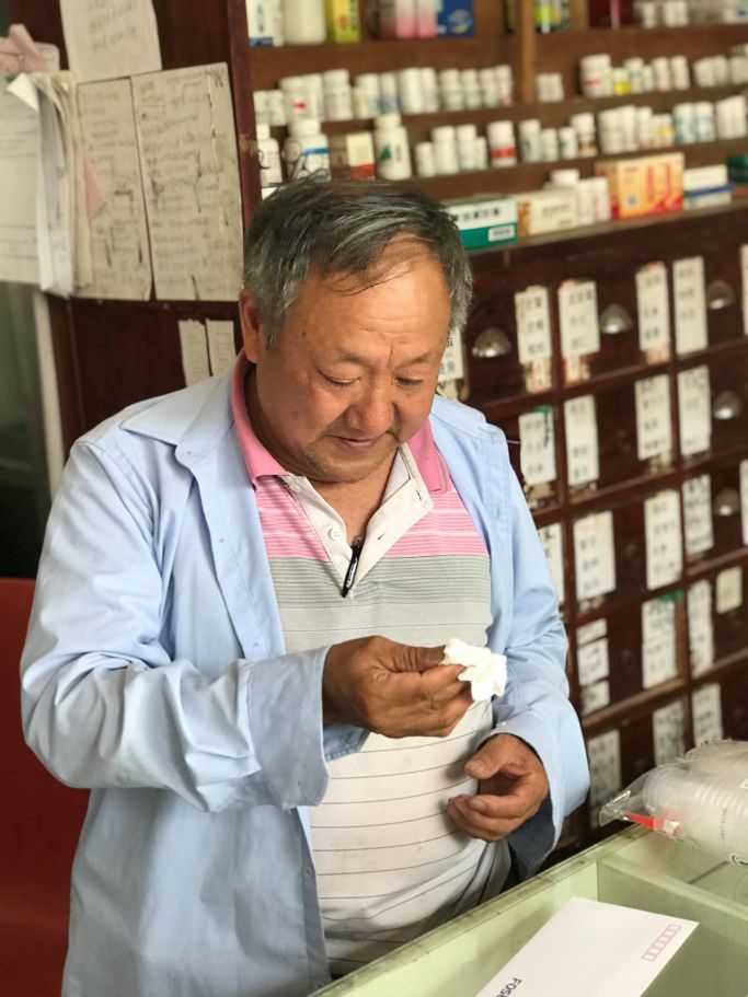 红池坝镇茶园村的村医王也毕情况相似。自家的底楼就是诊所,药房、诊断室、观察室、治疗室一应俱全。药房还分出中西医药房,西药有旋转送药转台,装中药材的柜子占了大半面墙。