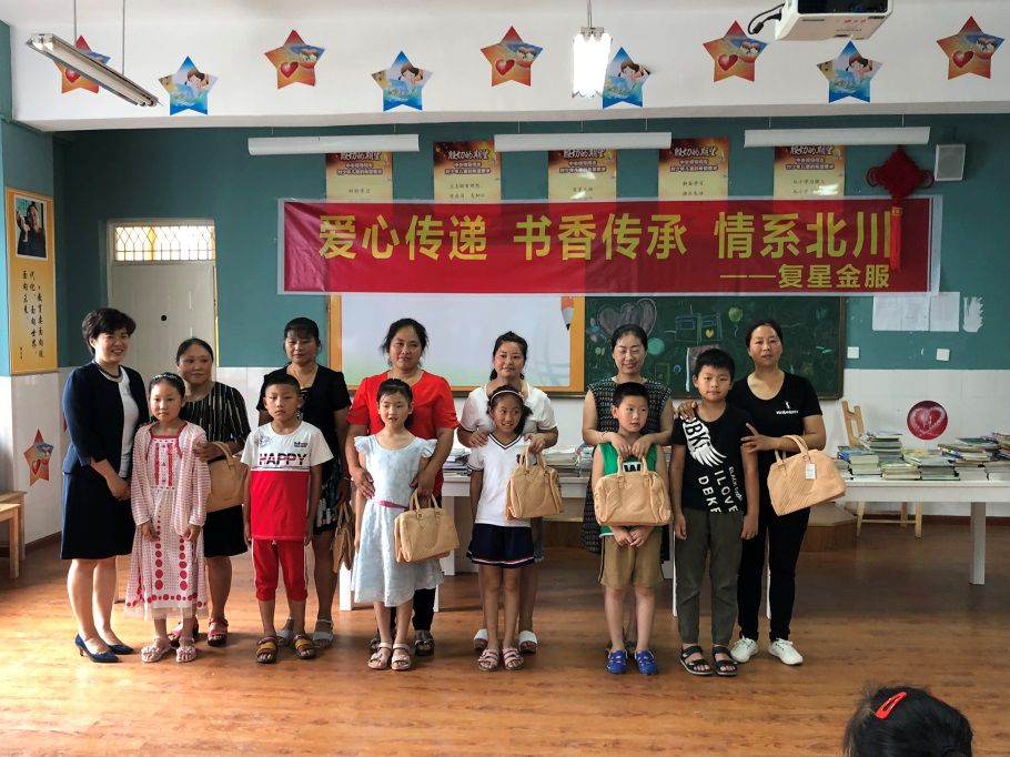捐书仪式后,辜同学还代表复星同学们为到场的6位妈妈送上背包作为礼物。辜同学表示,要让阅读成为一种习惯。通过捐书仪式,为孩子的成长插上智慧的翅膀。希望他们能从小多读有益的书,陶冶情操,将来能做对社会有益的人。而结对活动,为上海与北川县的小朋友们提供一个沟通交流、互相学习的平台,加深友谊,构建和谐关系。