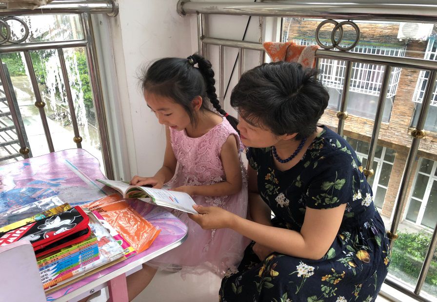 辜同学和熊兵7岁的女儿一起朗读课文