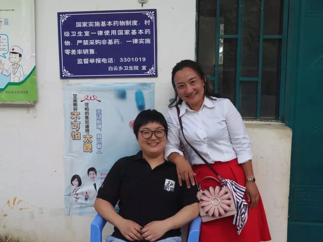 复星基金会驻云南屏边扶贫队员杨阳(左)与白俊美院长(右)合影