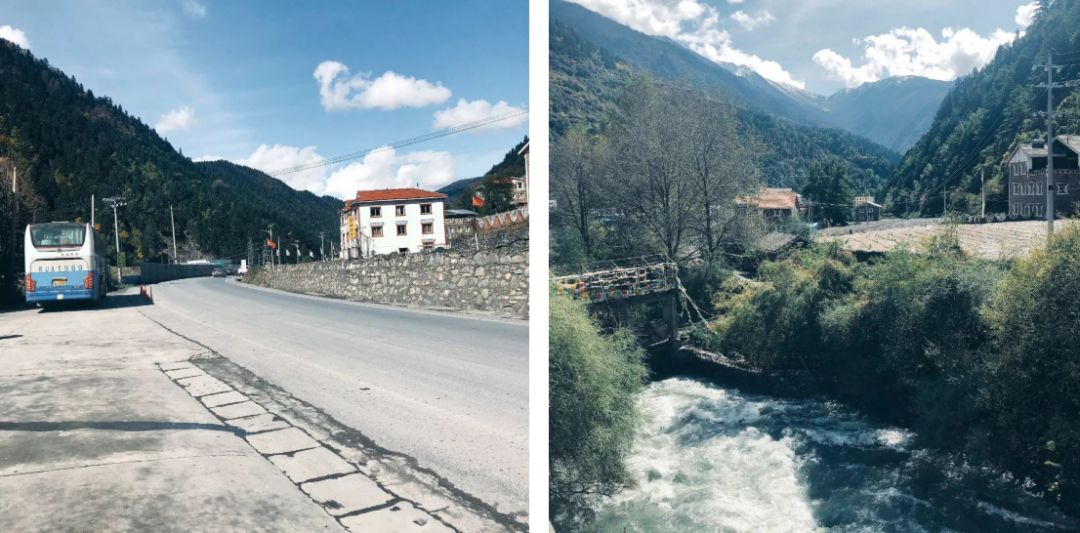 左图:九倒拐的壮丽景色 | 右图:中壤塘藏民的土坯房