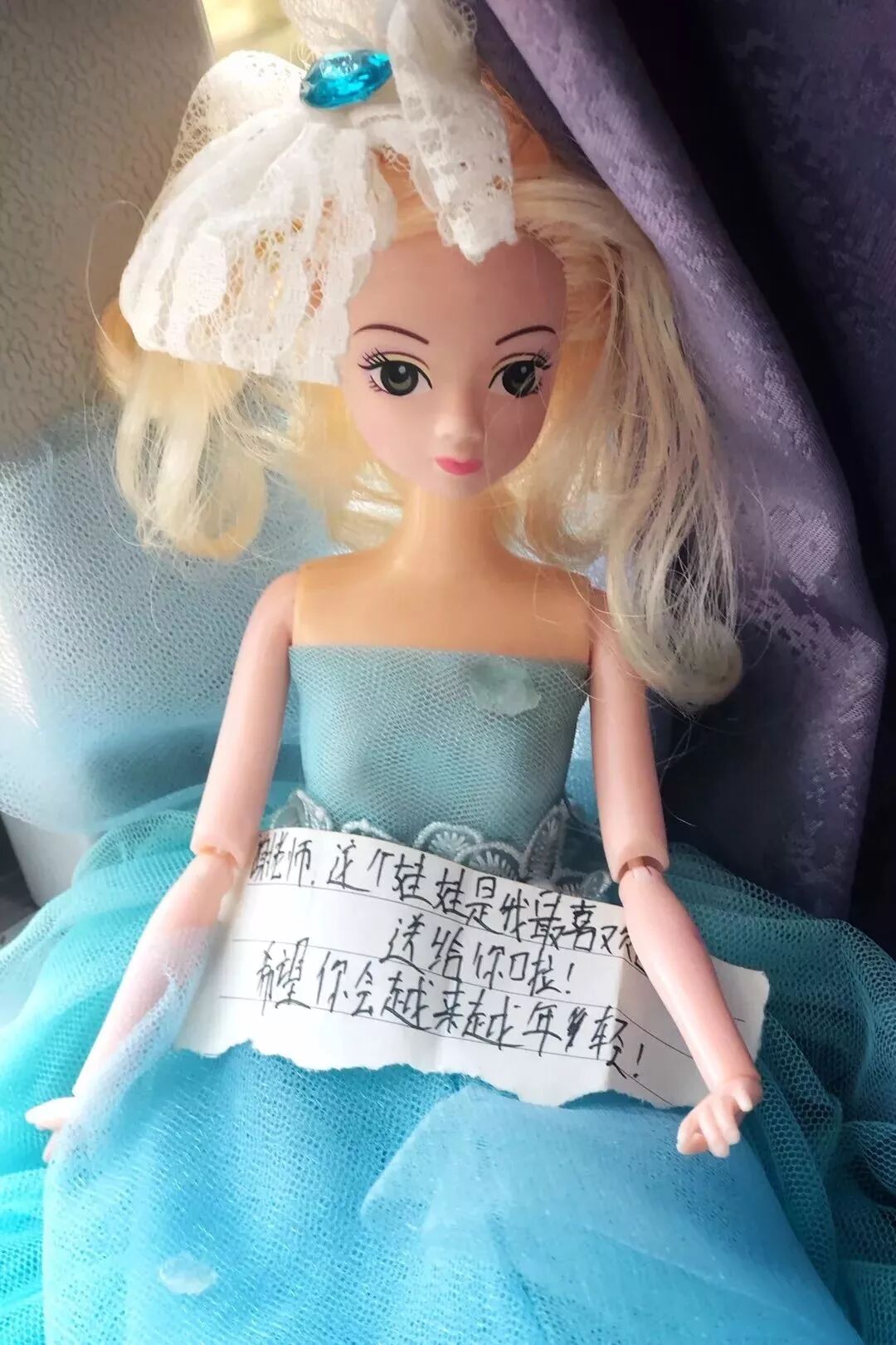 而女孩为老师送上了自己喜欢的娃娃,