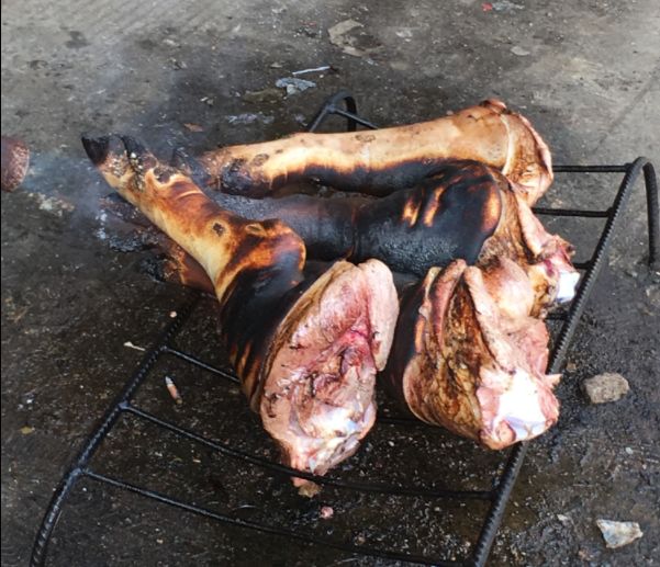 屏边县驻点队员杨阳下乡的时候发现村民们的猪脚烧黑了,不甚了解屏边人生活习性的杨阳以为是村民烧猪脚的时候没有掌握好火力,导致猪皮给烧焦。但机智的杨阳同学觉得事情肯定没有那么简单,于是便跑去询问当地居民:“吃的猪脚为什么都是黑色的呢?”