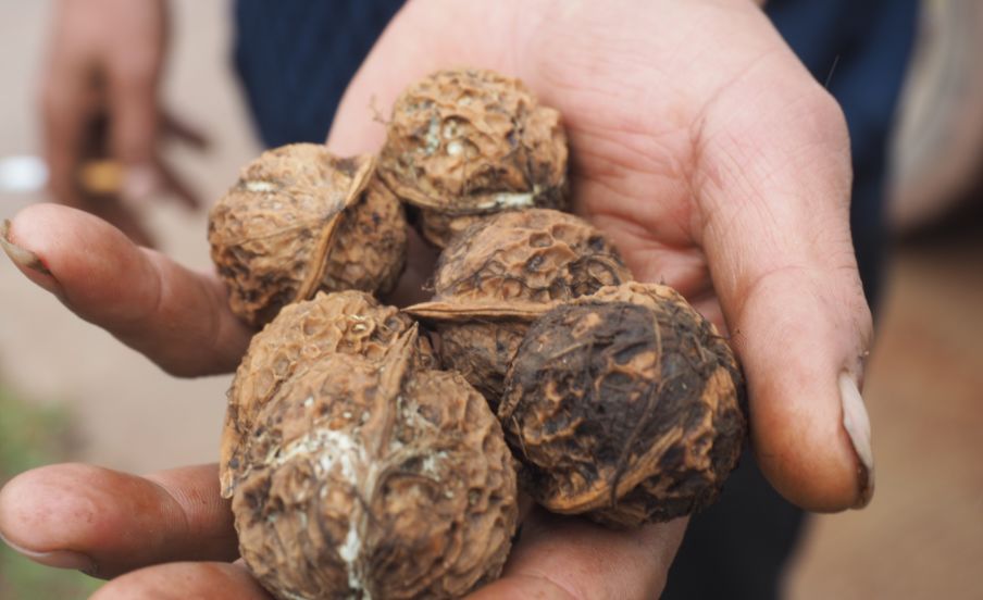 核桃大家都很爱吃,却很少人见过核桃是怎么收获的。在核桃收获的季节,“好奇宝宝”永平县驻点队员郭帅也加入采摘核桃的大军,开启了打核桃初体验。打核桃的时候,郭帅体力好,就拿长杆子敲果子,而体力稍差的妇女儿童则提筐捡果子。敲的人抬头,累脖子;捡的人俯身,累腰,一天下来,身疲力乏,但是看着这满满的收获,“好奇宝宝”郭帅只觉得心里乐开了花。