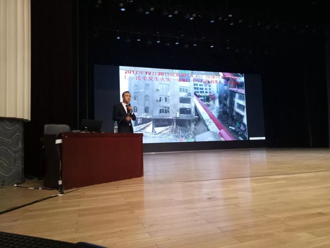 △赣州市防火中心桂警官 在做秋季消防知识的培训