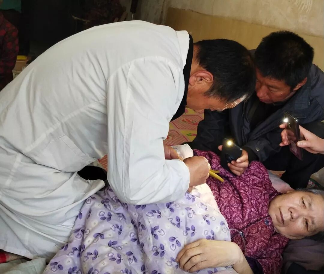 不一会儿,另一个卧床患者打电话过来要输液,院长连忙配好输液药品。我和他一起去了患者家,患者是个常年卧床的老人,由于长期卧床血管已经很细,为了不让老人移动,院长就跪在老人身旁为其输液。